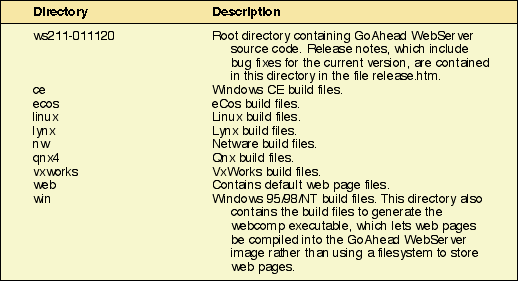 Table 1: GoAhead WebServer directory structure.