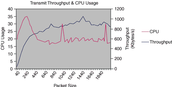 Figure 1: Maximum send throughput for various packet sizes.