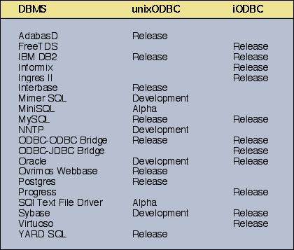 Table 1: UNIX ODBC DBMS drivers.
