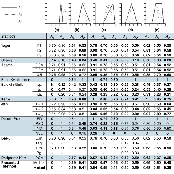 Table 1: Fuzzy number comparison methods applied in five difficult test cases. (Correct discriminations are in bold.)