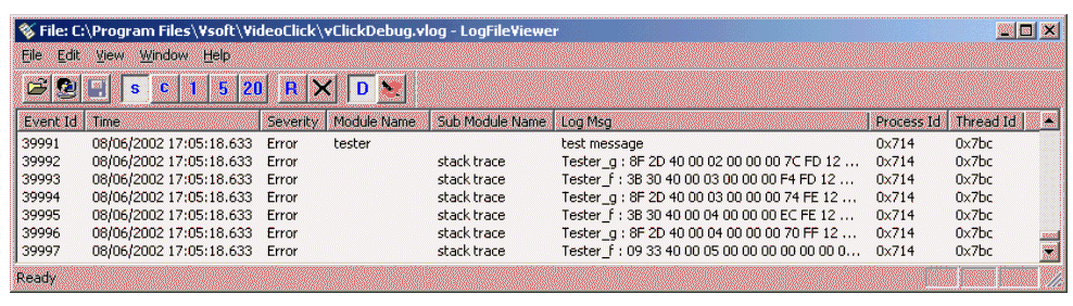Figure 2: Sample output to log file when stack tracing is activated.