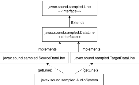 Figure 4: Frequently used interfaces and classes in the JavaSound API.