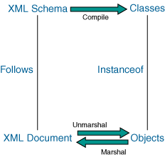 Figure 1: Comparing an instance of a compiled class to an instance document that conforms to the schema.