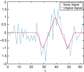 Figure 4: Noisy versus original input signal (standard deviation of GWN=0.4).