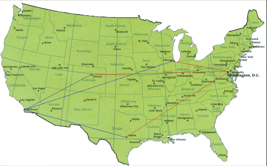 Figure 1: Routes from New York to San Diego.