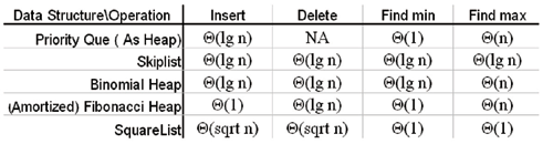 Table 1: Commonly used data structures.