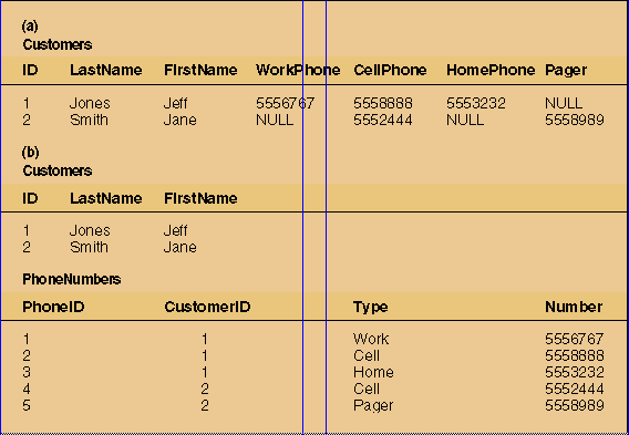 Table 1: (a) Relational table; (b) creating normalized tables from a relational table.