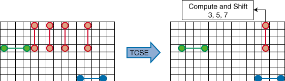 Figure 4: Temporal CSE: reduction from 6 probes to 3 probes and register chain of length 7.