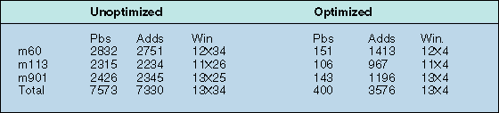 Table 1: DFG level statistics: probes, additions, and window sizes before and after optimization.