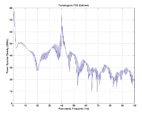 Figure 7: MATLAB pure signal periodogram with noise at 38 Hz.
