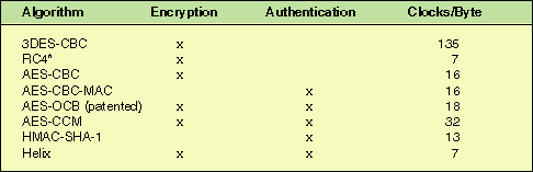 Table 1: Typical speeds of encryption and authentication. (*We include RC4 only for purposes of speed comparison. There are cryptographic attacks on RC4, and its security is not comparable to the other algorithms in this table.)