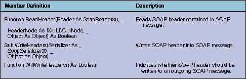 Table 3: IHeaderHandler interface members.