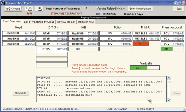 Report indicating the vaccination status for a test patient; used by the doctor on the day of visit.