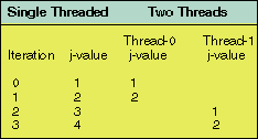 Table 1: The OpenMP code in Example 1(a) gives incorrect results when executed in parallel.
