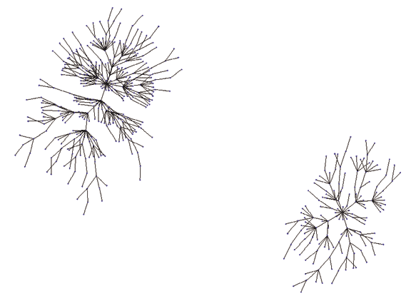 Graph simulated with the Barabási-Albert algorithm, with