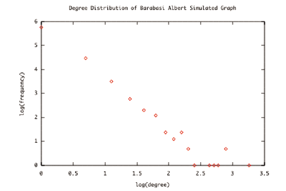 Log-log plot of the degree distribution of the graph in Figure 6.