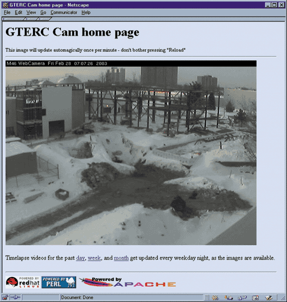 Web page that shows the most recently acquired still image.