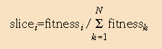 Fitness-Proportionate. This method calculates an expected number of times an individual is allowed to reproduce. This is accomplished by what is termed "roulette wheel" sampling. The roulette wheel can be considered as a pie chart. Each individual is assigned a slice of the pie. The size of that slice depends upon its fitness compared to the average fitness of the population, in that: