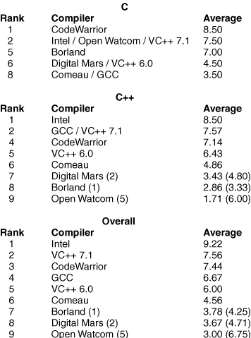 Table 2: Compiler performance rankings.