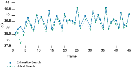 Figure 8: Exhaustive versus hybrid search (PSNR).