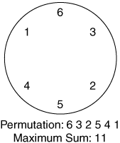Figure 1: Single solution for N=6, Maximum Sum=11.