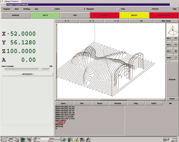 Figure 3: The Sherline EMC control panel resembles a Windows application, but it's Linux based on an RTOS. That's Chips, the EMC penguin, emerging from raw stock.