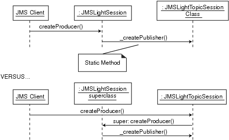 Creating a producer from the generic Session object, and the domain-specific TopicSession object.