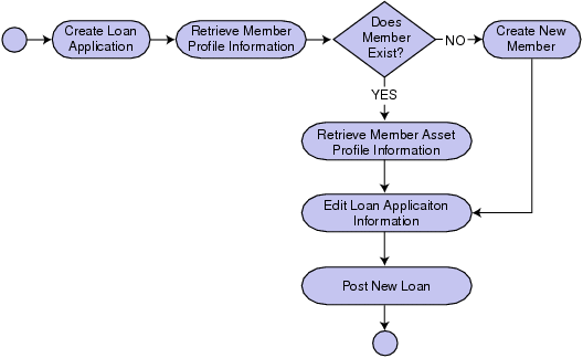 UML activity diagram documenting a new loan process.