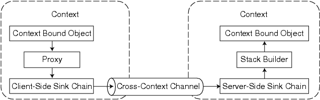 Schematic showing calls between context-bound objects.