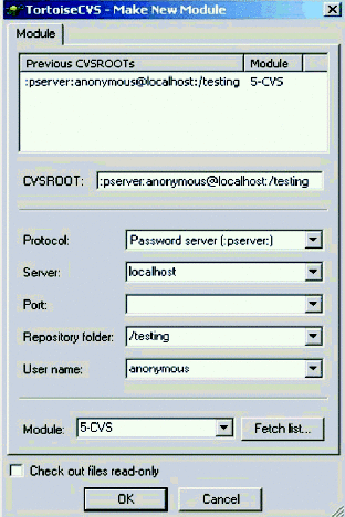 Creating a new module with TortoiseCVS.