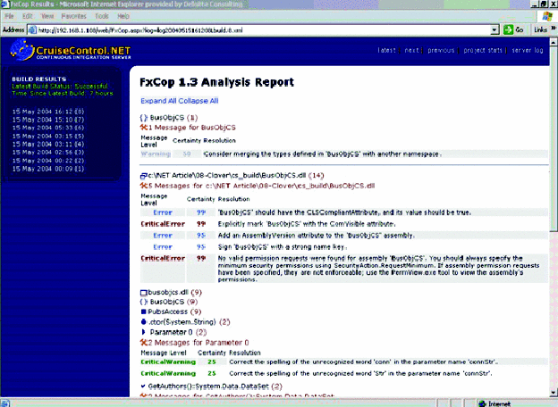 FxCop .NET guideline compliance report.