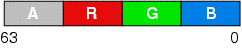 MMX pixel format. Each field has 8 integral bits; the number of fractional bits varies throughout the pipeline.
