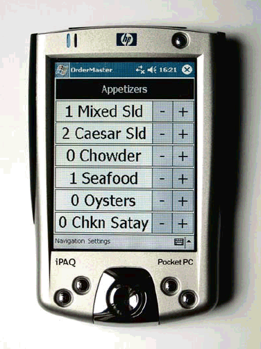 An appetizers subscreen in the OrderMaster application.