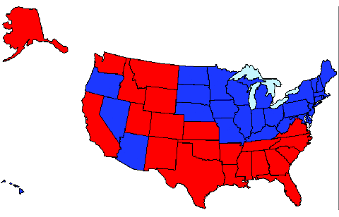 Example of electoral college model results, using Method 1, after 9 iterations.