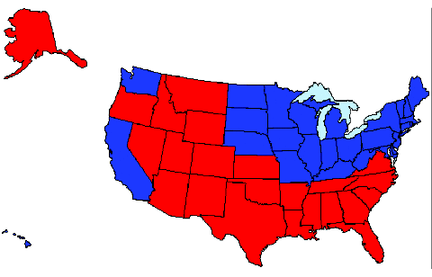 Example of electoral college model results, using Method 1, after 10 iterations.