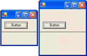 After resizing, the button remains the same distance from the left edge and from the center line.