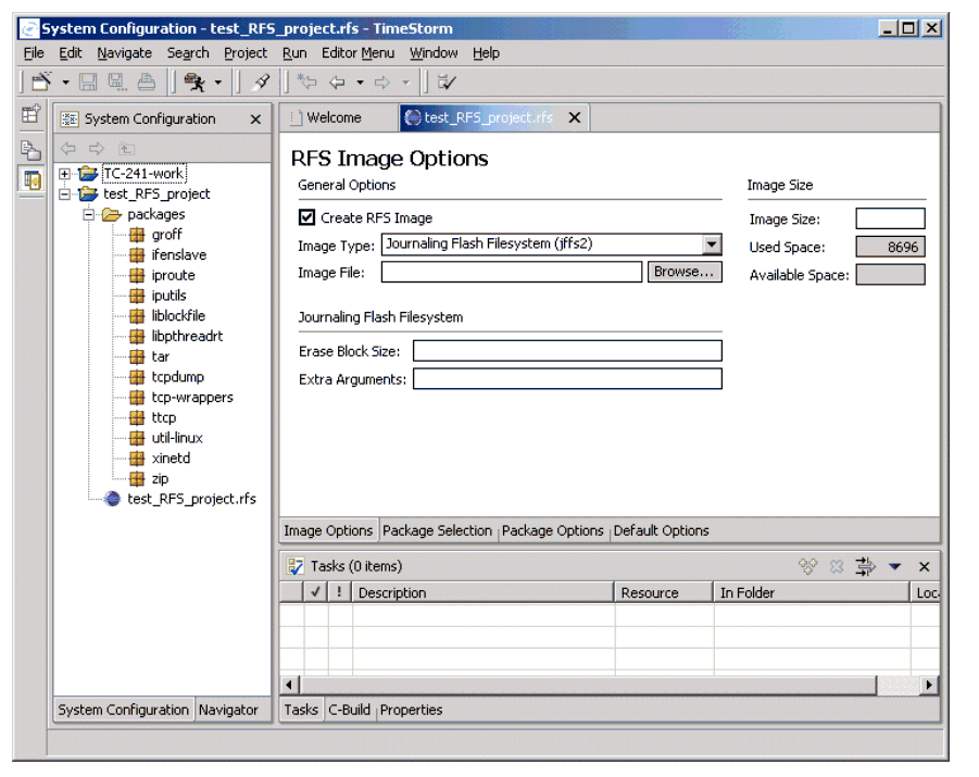 Eclipse-like, multipage editor for configuring a root filesystem for a target board.