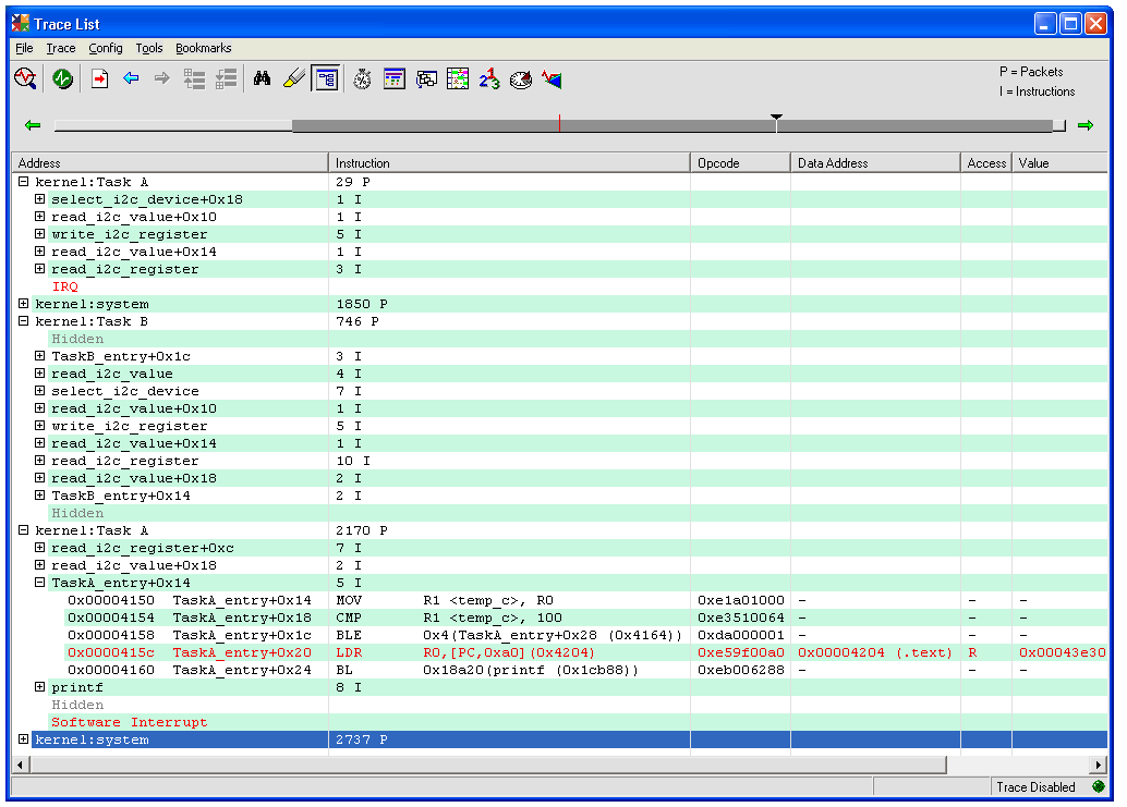 Trace-analysis tool. You can see that the first access to the I
