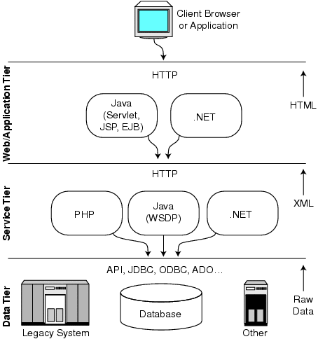 Web architecture with a service tier.