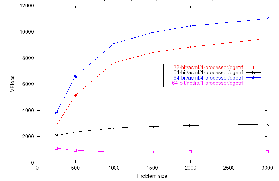 Timing DGETRF (1.8GHz four-processor AMD Opteron).