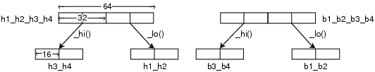 intrinsics to split 64-bit elements into 32-bit elements. 64-bit data elements are read into memory using the _