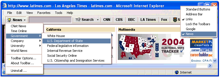 The News toolbar in action.