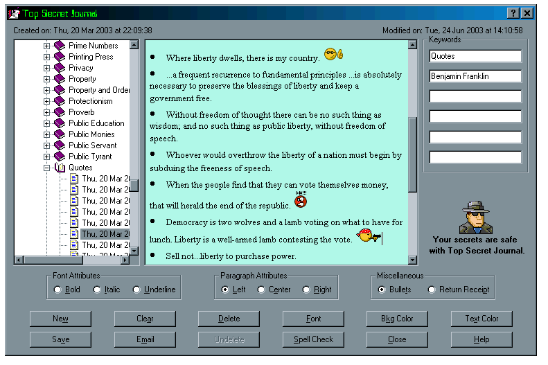 Journal pages can have up to six entries under the By Keyword category.
