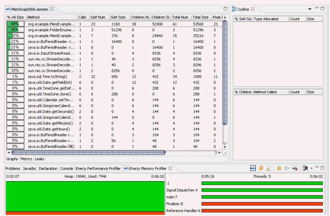 Metrics view of memory profile.