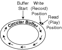 Pseudolive mode using a time-shift buffer. In this mode, the read/write pointers point to the same location in the time-shift buffer.