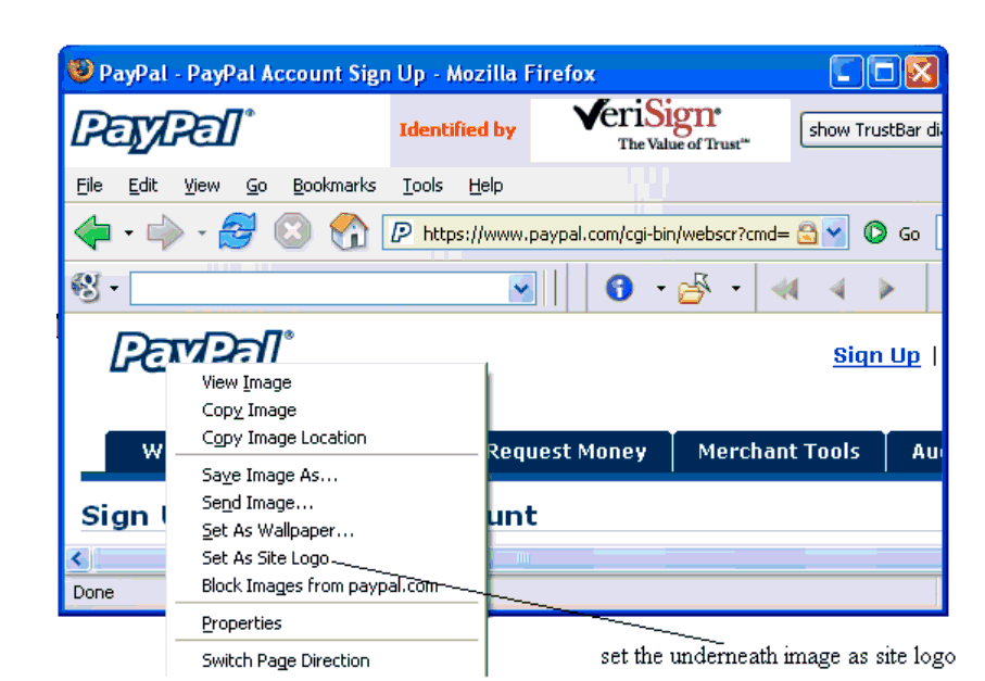 TrustBar within a secure site.