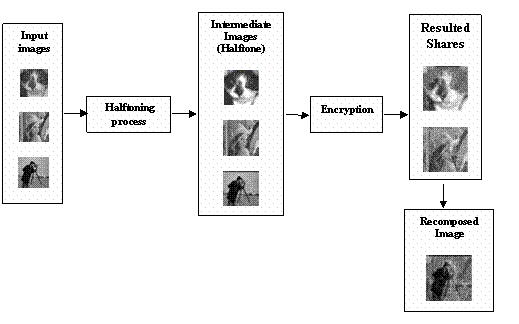 The representation of the proposed Gray-level Visual Cryptography System.
