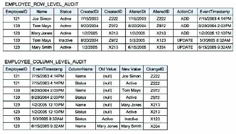 Row-level and column-level audit structures.