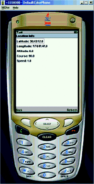 Location details displayed by the MIDlet.