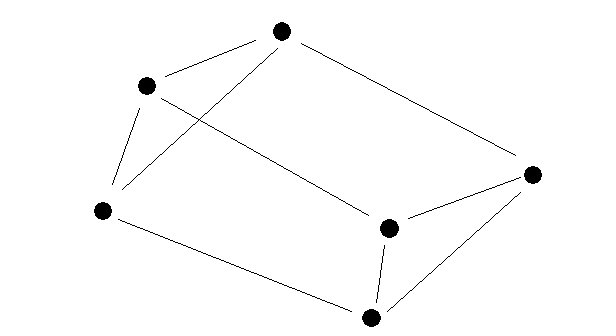 A six-node network in which there is a two-link path from any node to any other, even if a node is deleted.